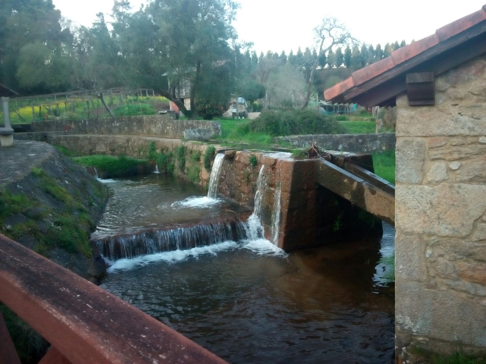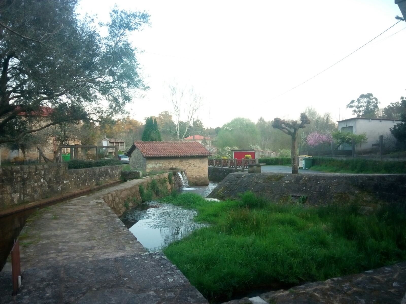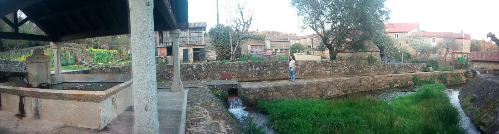 There are a laundry,a mill,next to pass the river Tambre,small houses whith crops and a granary.